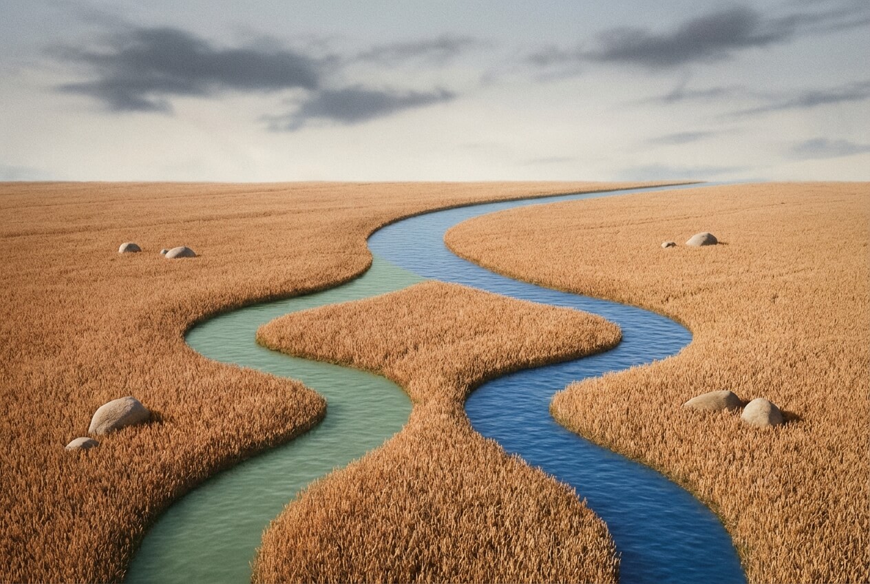 A visual metaphor showing a narrow canal with flowing blue water entering and exiting a gray lock labeled "Empathy, patience, and planning." The top of the lock shows a green arrow pointing downward labeled “Fractured goodwill, client churn.” The bottom shows another green arrow pointing downward labeled “Goodwill, smooth transition, client retention.” The image is titled “Successful Acquisition Through Empathy, Patience, and Planning,” illustrating how thoughtful planning facilitates a smoother transition in advisor acquisitions.